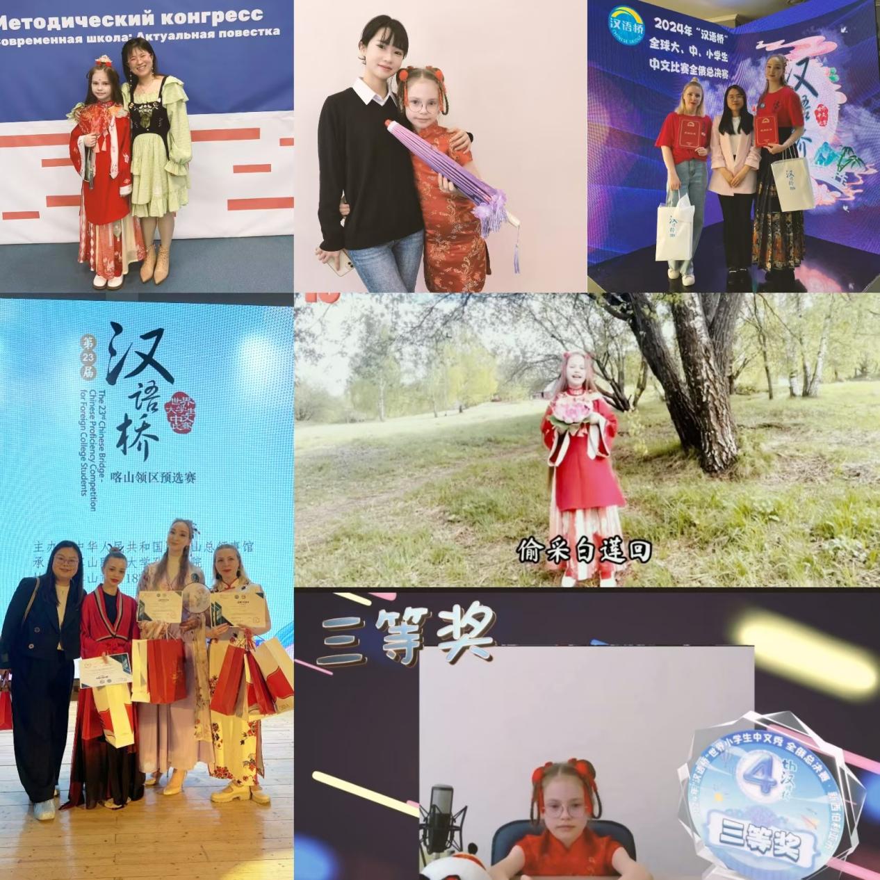 当地时间2024年5月18日和5月21日,第二十三届“汉语桥”世界大学生中文比赛和第四届“汉语桥”世界小学生中文秀俄罗斯赛区决赛在新西伯利亚市圆满结束。下诺夫哥罗德国立语言大学孔子学院(以下简称下语大孔院)共派出3名选手参赛,其中小学生组1名、大学生组2名。经过激烈角逐,小学生组选手玛丽雅荣获个人三等奖,大学生组安娜、艾丽雅获得优胜奖。