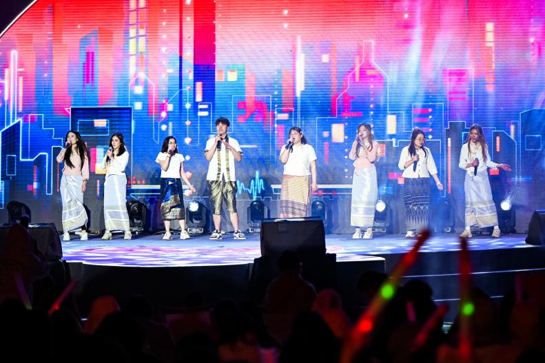 “友谊无界”篇章中,《和世界握手》主题曲合唱环节,国际金融与贸易学院越南留学生阮氏茶媚、东方语言文化学院越南留学生武氏梅英、中国语言文化学院越南留学生吴秋妆与来自西南十所高校的各国青年携手同台,用多语言歌声诠释了“相知无远近,万里尚为邻”的意境,也象征着中国-东盟青年一代携手拥抱未来的决心。