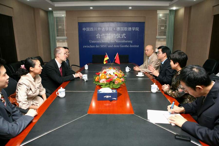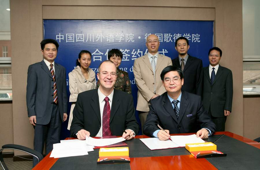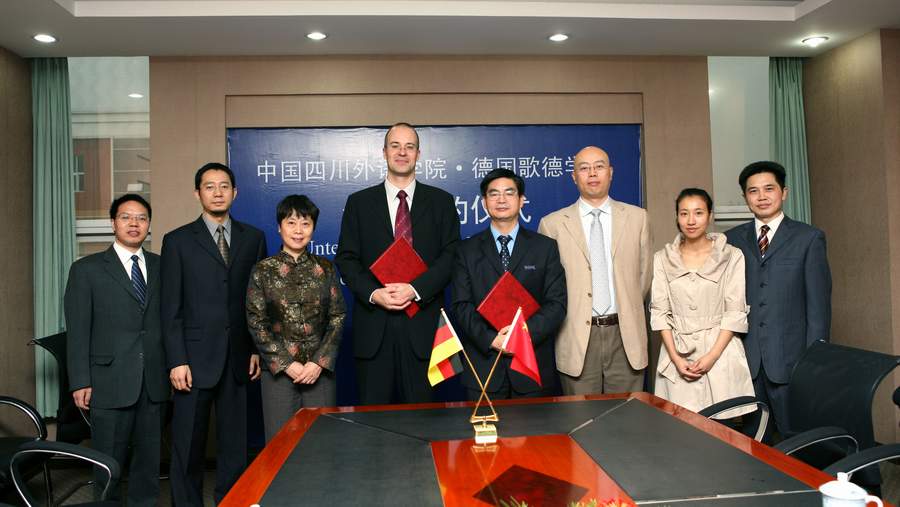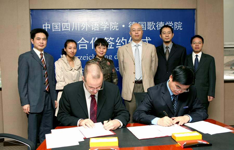 2008年10月22日,经过近半年的磋商洽谈,四川外语学院与歌德学院签署协议,合作建立歌德语言中心。