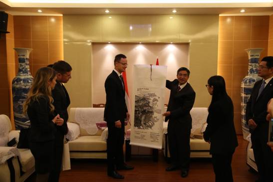5月16日上午,匈牙利外交与对外经济部部长西雅尔多·彼得(SzijjártóPéter)一行来访我校,校长李克勇、副校长祝朝伟、国际关系学院院长肖肃盛情接待了来宾。重庆市外侨办副主任唐文、领事处处长范青、副处长肖畅以及礼宾处副处长赵印陪同来访。