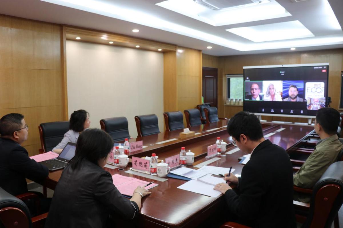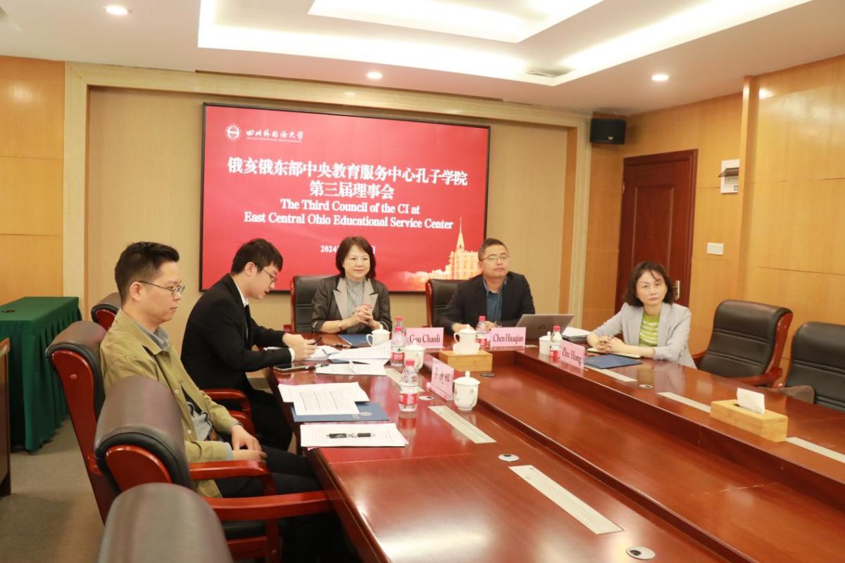 10月25日上午,美国俄亥俄东部中央教育服务中心孔子学院(以下简称“俄亥俄孔院”)第三届理事会视频会议在立德楼A301举行。俄亥俄东部中央教育服务中心学监Randy Lucas、俄亥俄孔院外方主任Michele Carlisle、财务总监Matt King、技术执行总监Nic Brown,我校党委副书记苟朝莉、国际合作与交流处、计划财务处相关人员出席会议。