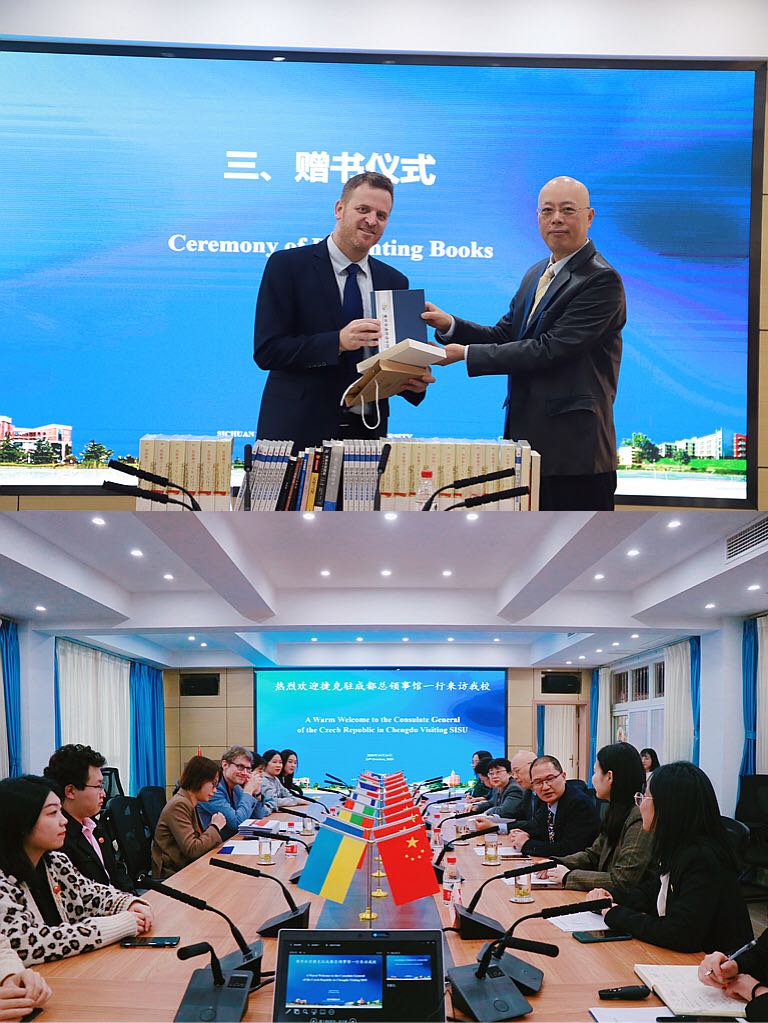白俄罗斯驻重庆领事(代理馆长)叶·德米特里(Dmitry Emelyanov)参加新时代中外人文交流助力“一带一路”建设高层论坛并发言。部分总领馆代表前往院系,与语言对象院系师生代表进行了友好交流。