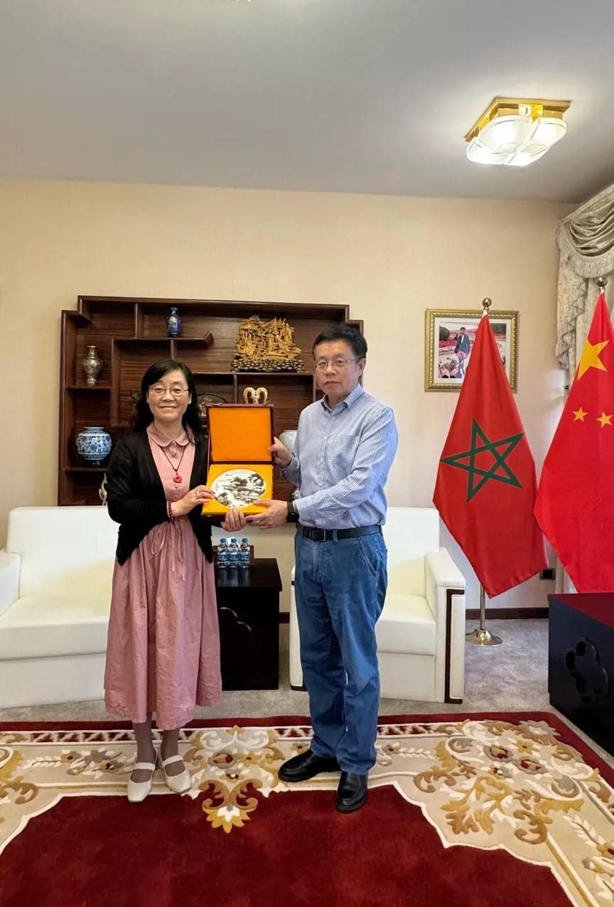 2025年5月24日,法语学院学术院长、世界法语区发展研究中心主任杨少琳,学院副院长刘帅锋,世界法语区发展研究中心副主任王娅一行在访问摩洛哥多所高校期间前往中国驻摩洛哥大使馆拜访李昌林大使。