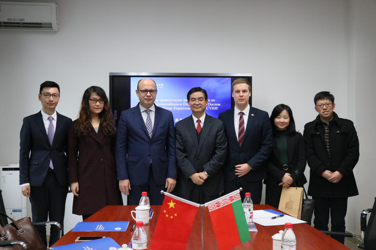 11月9日上午,白罗斯特命全权驻华大使Рудый Кирилл Валентинович(鲁德·基里尔·瓦连京诺维奇)、白罗斯驻华大使馆三秘ЕмельяновДмитрий Алексеевич(叶梅利亚诺夫·德米特里·亚列克谢维奇)来访我校,重庆市外办欧非处干部张璨陪同来访。校长李克勇亲切接待了来宾,俄语系副主任邵楠希、外事秘书付景,国际合作与交流处项目主管代柯共同参与接待。