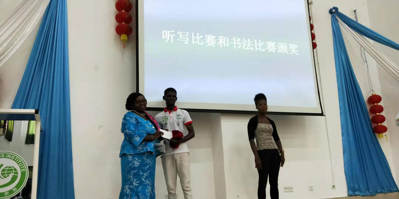 前多哥驻中国大使夫人阿莫为书法比赛获奖者颁奖