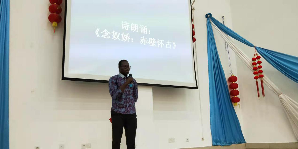 随后学生用自身超强的感染力以一首《逆光》将活动现场的气氛点燃。紧接着《念奴娇·赤壁怀古》的朗诵者伴随着气势宏伟的古韵用自己独特、浑厚的嗓音,将诗人歌颂古代豪杰,传颂英雄丰功伟绩的感情抒发的淋漓尽致。