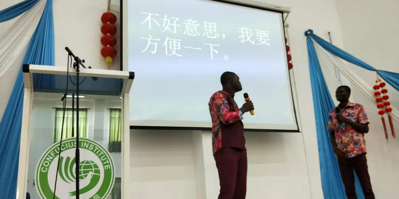 四年级学生以诙谐幽默的小品《汉语难》作为开场,小品以学汉字为切入点,讲述了在学习汉语的过程中遇到的各种趣事,引来现场观众的阵阵掌声,在场的学生表示对这些“困难”也是感同身受。