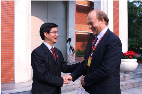会见中,李校长首先对陶米恒参赞先生到川外参加60周年校庆表示热烈地欢迎和衷心地感谢!李校长向客人介绍了川外的历史发展以及俄语系的教学与科研等相关情况。“俄语是我校的发家之语。”李校长说道,“川外历经中国人民解放军西南军政大学俄文训练团、第二高级步兵学校俄文大队、西南人民革命大学俄文系、西南俄文专科学校、四川外语学院等发展时期。川外建校六十周年同时也是俄语系成立六十周年。2009年我校成立了俄语中心,今年在俄罗斯建立了孔子学院,我校与贵国的合作日益紧密。我校的俄语教学将继续加强与俄方高校的作与交流,希望能够得到俄罗斯政府尤其是俄罗斯驻华大使馆的支持。”