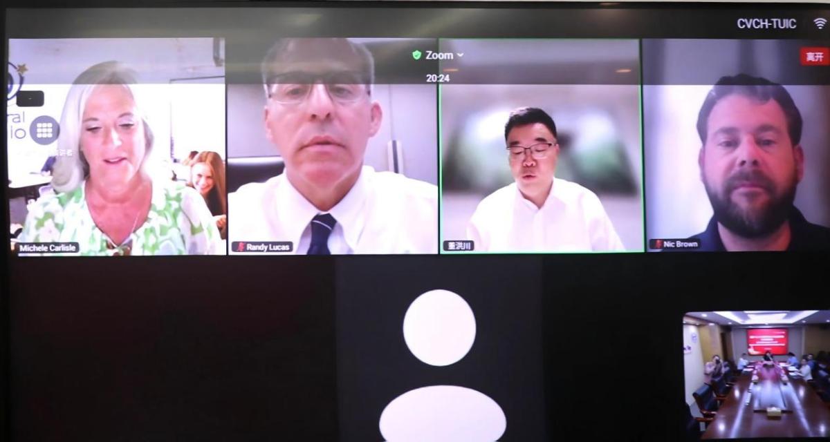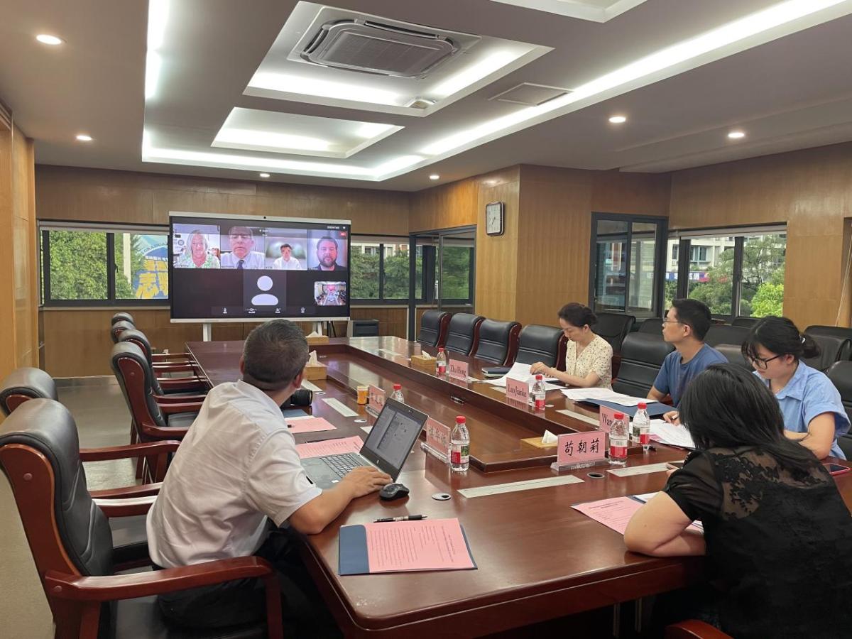 7月8日晚上,美国俄亥俄东部中央教育服务中心孔子学院(以下简称“俄亥俄孔院”)第四届理事会视频会议在立德楼A301举行。俄亥俄东部中央教育服务中心学监Randy Lucas、俄亥俄孔院外方院长Michele Carlisle、财务总监Matt King、技术执行总监Nic Brown,我校校长董洪川、党委副书记苟朝莉、国际合作与交流处、计划财务处相关负责人出席会议。