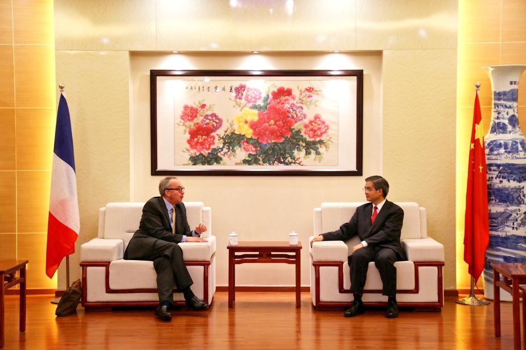 2019年6月5日上午, 法国驻成都领馆新任总领事白屿淞 (Bruno BISSON)访问我校。李克勇校长对来宾表示诚挚欢迎,对白屿淞总领事再次来中国履职表示祝贺,并向来宾介绍了学校的基本情况,学校与法国及法语国家在师生交流、文化等方面的交流与合作,尤其介绍了法语联盟在长期缺乏法方主人的情况下仍然保持良好的工作状态。李克勇校长表示,学校愿意与法国高校展开更深入更广泛的合作与交流,现在正加紧与法国斯特拉斯堡大学3+1联合办学项目的前期准备工作。