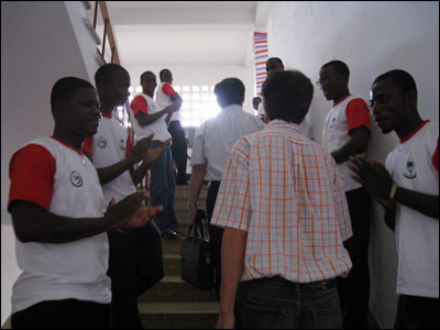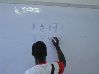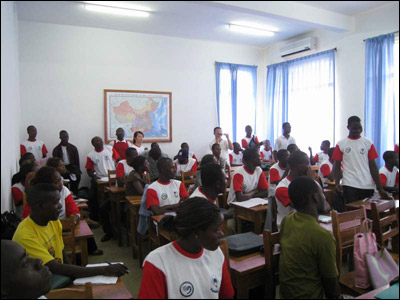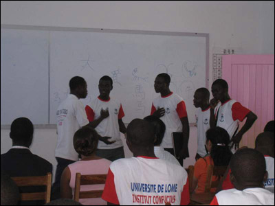 活动结束前,同学们将自己精心准备的小品、诗歌朗诵、舞蹈等节目向李校长一行做了汇报演出。看着同学们一丝不苟的表演,听着同学们略显生涩的汉语,让人不禁感慨汉语语言在遥远的多哥也不乏爱好者,而这份感慨也让我们的肩上多了一份沉沉的责任。
