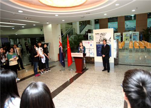 随后,郭南希总领事用中英双语致辞。她讲到,中澳建交以来,澳大利亚和重庆一直保持着友好的双边关系,近年来双方在教育文化交流等方面也逐步加深。郭南希总领事展示并赠予我校《重庆公使馆——抗战时期澳大利亚驻华外交机构》画册,并希望双方进一步加深教育文化交流。开幕式结束后,到场嘉宾和师生代表合影留念。
