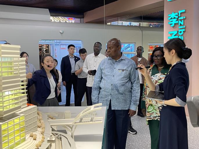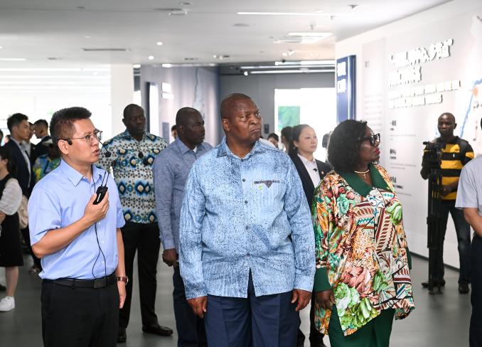(8月29日下午,陈昉陪同代表团参观城市规划展览馆)