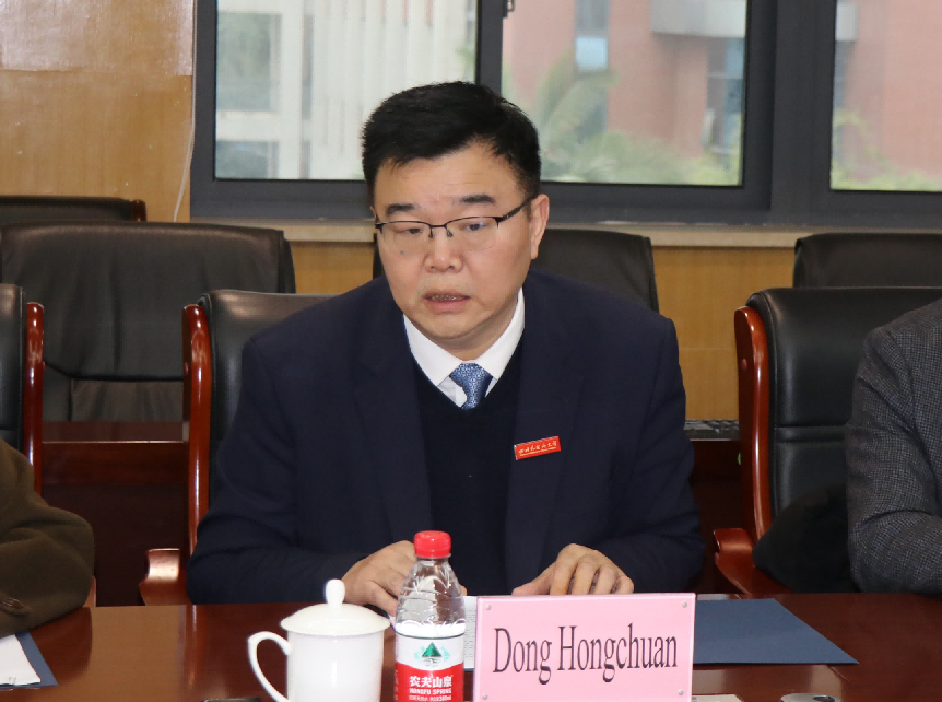 董洪川对阿米娜·哈马迪一行到访表示欢迎。他简要介绍了学校的办学特色、学校与阿拉伯国家交流情况和阿拉伯语专业的建设成果,表达了加强川外与阿联酋交流合作、推动阿联酋师生和政企代表到川外学习交流的合作意向。
