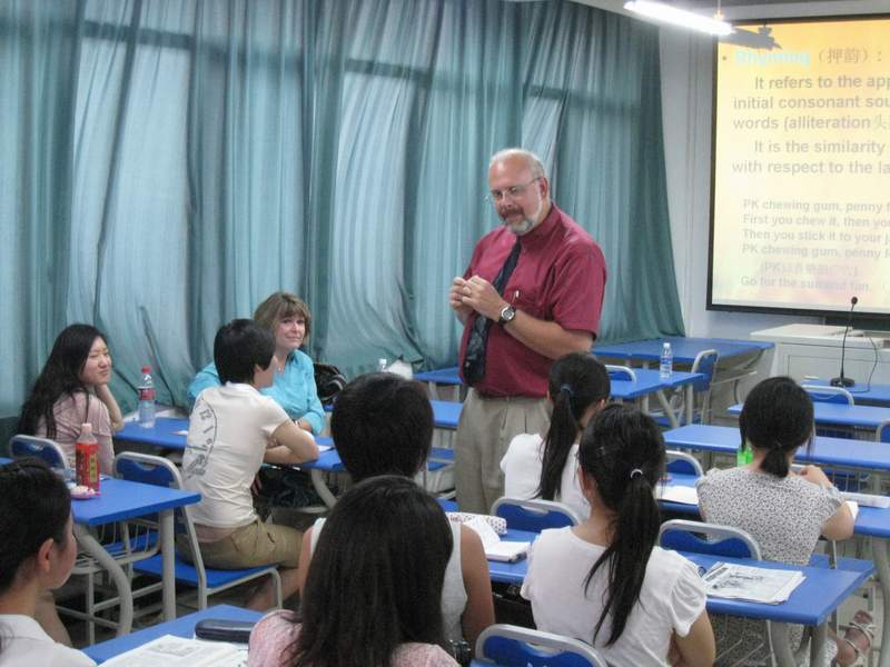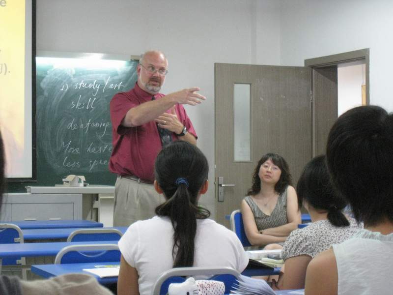 莱特教授在教学楼听了我校新传副院长张幼斌老师广告研究的课与部分学生和老师进行了座谈。他介绍了美国爱荷华州的基本情况、德雷克大学新闻传播学院的教学情况等。莱特教授丰富的知识和风趣的语言赢得了师生阵阵掌声,学生机敏的回答和精彩的提问也给莱特教授留下了深刻的印象。随后莱特教授参观了新闻传播学院的电视台播音室和摄影室。