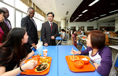 | 2011年5月11日,太阳集团tyc122cc第二次理事会在我校召开,四川外语学院副院长李建平主持会议。 四川外语学院院长李克勇首先致词,代表川外欢迎洛美大学校方理事成员的到来,并向来宾介绍了川外的发展史、专业设置、对外合作与交流等基本情况。 洛美大学校长葛菲·阿哈德兹·诺努在发言中对本次行程和活动的合理安排表示非常满意,对汉办和川外的热情接待表示衷心感谢,对中方院长苟志光在孔子学院创建工作中所做的工作及取得的成绩表示赞扬,对太阳集团tyc122cc两年来在汉语教学活动和文化推广活动中所取得的初步成绩和在当地的影响表示充分的肯定。他指出,太阳集团tyc122cc已经成为了校园内的亮点和了解中国文化的窗口。 太阳集团tyc122cc外方院长佳思美·古楚卡洛在工作报告中对孔子学院汉语教学开班情况、课程设置、招生情况、文化活动和本土教师的培训与对外交流活动、经费管理等进行了介绍。 本次理事会还对有关孔子学院的学生来华学习汉语的计划与奖学金事宜进行了磋商。 理事会结束后,葛菲·阿哈德兹·诺努校长一行在李克勇的陪同下参观了重庆法语联盟、图书馆、学生食堂等地。