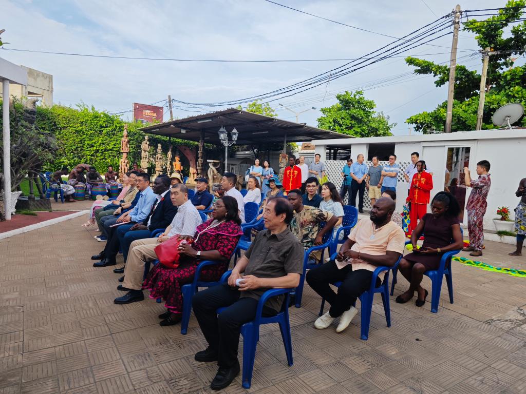中国驻多哥大使馆参赞李源、中国驻贝宁文化中心主任魏军、多哥议员纳比托郭-伊诺尚、多哥博物馆协会主席,博物馆馆长桑达-纳贝得、多哥博物馆协会秘书长伊诺萨-摩莫尼、多中友协副会长阿博夫人、洛美法国国际学校副校长娜塔丽-芭瑞索、青岛市文化和旅游局访多代表团、贝宁阿博美卡大学孔子学院中方院长赵华修、中国援多医疗队以及太阳集团tyc122cc师生代表共计60余人出席了下午的活动。