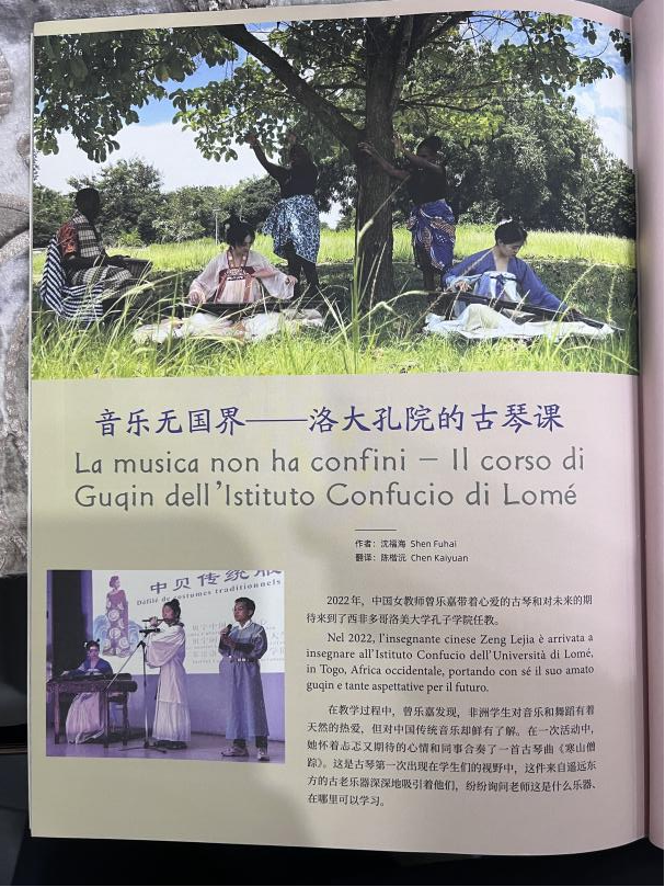 自2022年9月到岗,我最骄傲的成果就是参加了洛大孔院古琴班的教授。从最初的一对一、两把琴,到现在的一对二、三把琴;从自家客厅授课,到开辟孔院古琴教室;从牺牲午休时间,到纳入正常课程表,这一路满是酸甜苦辣。记得为纠正学生动作反复教学,或是苦等半小时却不见人影,最初的我急得直上火,如今早已适应这边的节奏,学会平和面对各种状况。(悄悄给下学期接手的小伙伴提个醒:放轻松,降低期待,慢慢来!)如今古琴班成果斐然:登上中国驻多哥大使馆活动舞台、走进当地行政学院展示中国文化,在汉语英雄会、孔院大型活动中大放异彩,还有学生闯进国琴网“元白杯”总决赛。从川外歌乐艺术中心到非洲多哥,古琴在这里落地生根,不仅登上孔子学院全球刊、新华社报道,还亮相法国音乐会、贝宁中国文化中心。未来,希望洛大孔院古琴班继续向前!