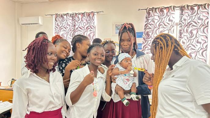 “谢谢老师,我不再来上课了,因为我一岁的宝宝没人照顾,但我和你在线。谢谢。”仅上了四个星期课程的伊茜因家庭责任不得不离开课堂,我后来发现,课堂三组组长龚泽手机视频会议里持续亮着的窗口,竟是他特意为伊茜开启的在线通道。要知道在多哥,网络资费可以说是奢侈(20G流量约需120元人民币),即使是教师都觉得昂贵,更何况这些为谋生而学习汉语的学生。在这里,不辞而别的学生时有出现,能坚持请假已十分难得,像伊茜这般克服困难坚持线上学习的学生,实属凤毛麟角。
