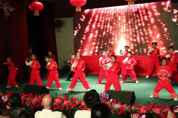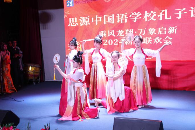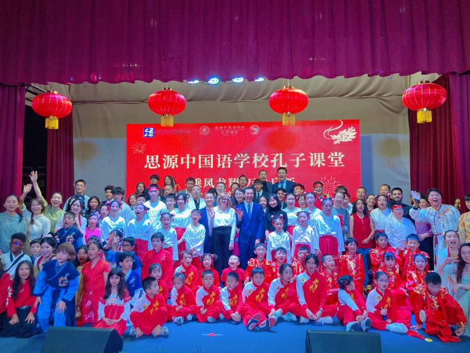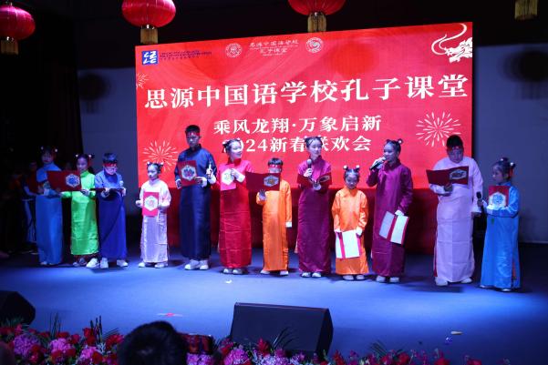 随后,思源中国语学校孔子课堂的师生带来了精彩的文艺表演。华裔学生的武术节目《功夫宝宝》用童声展现中华武术的精神与内涵,语言节目《十二生肖大拜年》在风趣中诠释生肖蕴含的和谐之道,本地儿童歌舞《你笑起来真好看》尽显童真可爱,当地成人学生一首《对面的朋友看过来》展现了学习中文的快乐与趣事,教师舞蹈节目《芒种》则以雅致的古风装扮和婀娜舞姿展示中华文化的典雅之美。