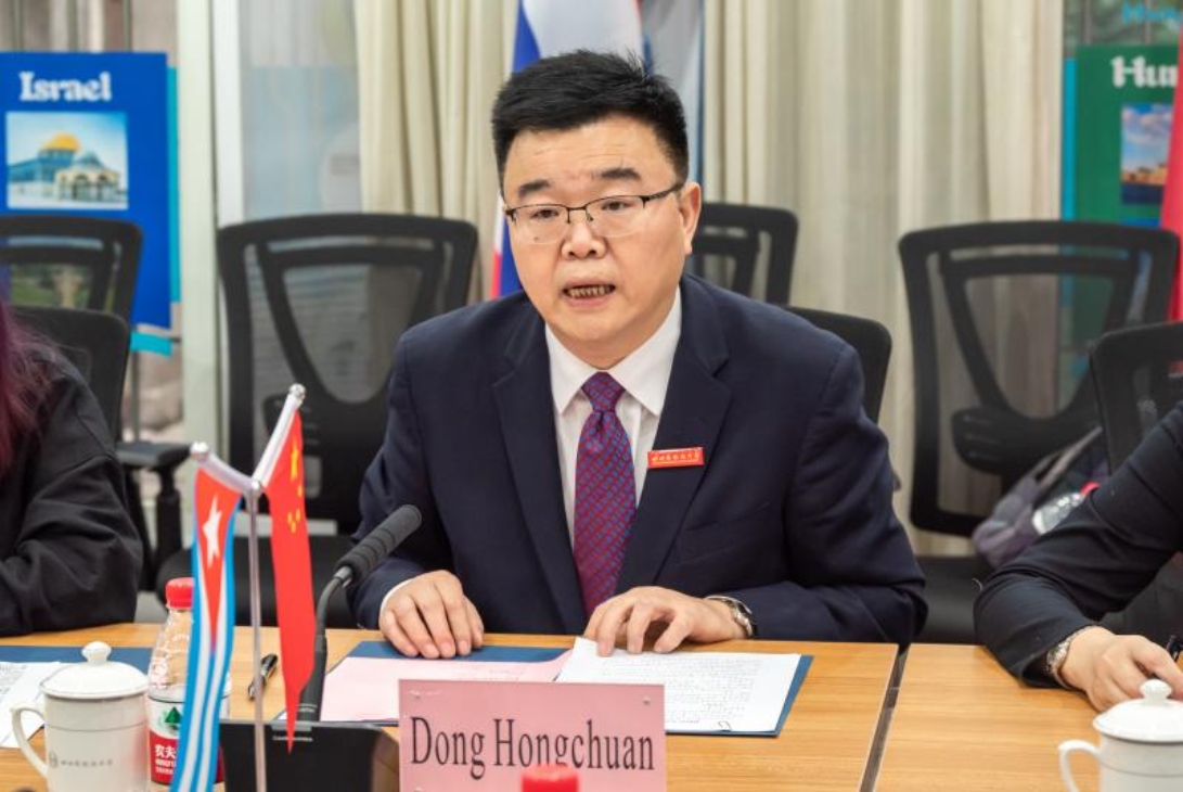 董洪川对白诗德大使一行的到访表示欢迎。他简要介绍了学校学科专业建设及国际交流概况,并着重介绍了西班牙语专业建设情况。他提到,川外与古巴已有不少教育交往,曾选派五届西语专业学生赴古巴留学,也曾承接古巴政府奖学金项目,与古巴哈瓦那大学共同培养了近200名中国西部的大学生。他表示,学校愿与古巴高等教育机构加强交流合作,促进西语专业建设和人才培养,也欢迎古巴教授、学者和青年学生来川外交流学习。