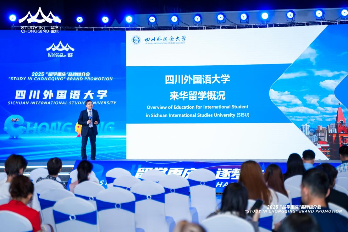 在高校推荐环节,国际合作与交流处负责人谌华侨重点推介了“留学川外”品牌,从多元文化课程体系、沉浸式语言实践平台到特色项目,全方位展示了学校在国际教育领域的特色与优势。