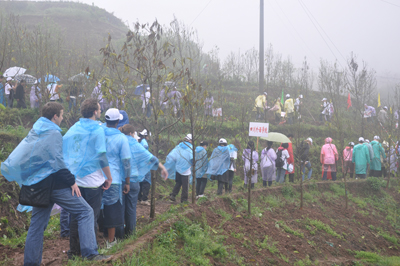 为扩大全国绿化委员会、重庆市委、市政府“绿化长江、重庆行动”的国际影响,让在渝外籍师生更好地认识新重庆、了解新重庆、热爱新重庆、建设新重庆、宣传新重庆,同时丰富外籍师生的课余生活,4月16日,重庆市教委在涪陵组织了2011年重庆市外籍师生“携手绿化长江、共筑健康家园”植树活动,我校外籍教师、留学生及工作人员共20人冒雨参加了此次活动。此次活动在市教委及涪陵当地高校的精心组织下取得了圆满成功,也给参加活动的外籍师生留下了深刻印象,让他们再次真切地感受到新重庆的秀美风光以及处处洋溢着的勃勃生机。活动结束后,市教委还给我校发来了感谢信,对我校的组织工作和外籍师生的积极参与给予了充分的肯定。