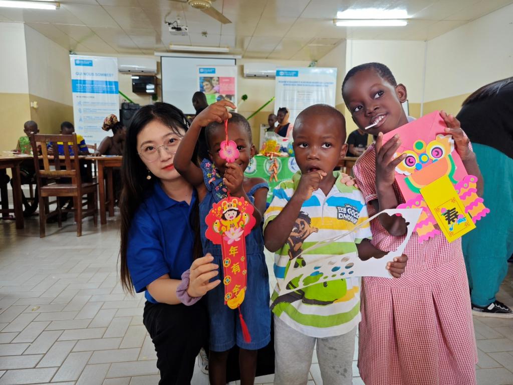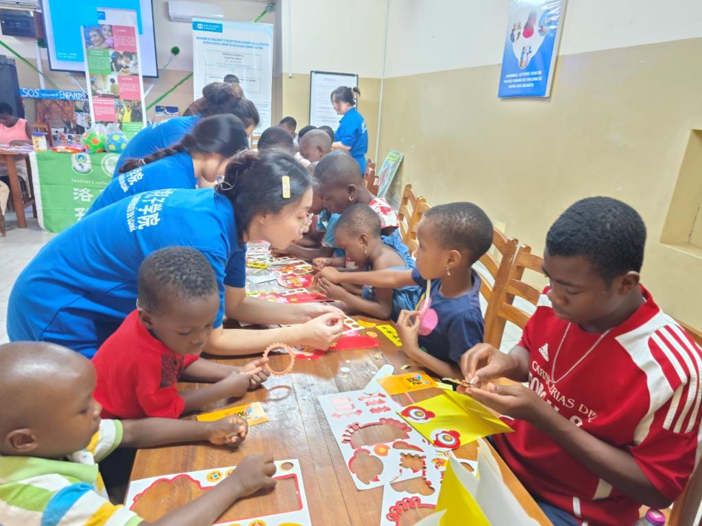 当地时间6月17日,为了响应彭丽媛女士发起的“中非携手暖童心”关爱非洲孤儿健康活动倡议,在“国际非洲儿童日”到来之际,太阳集团tyc122cc中方院长朱玉珊带领孔院全体中方教师走进洛美SOS儿童村,捐赠爱心物资,并且为孩子们带来了精心准备的中国文化体验活动。