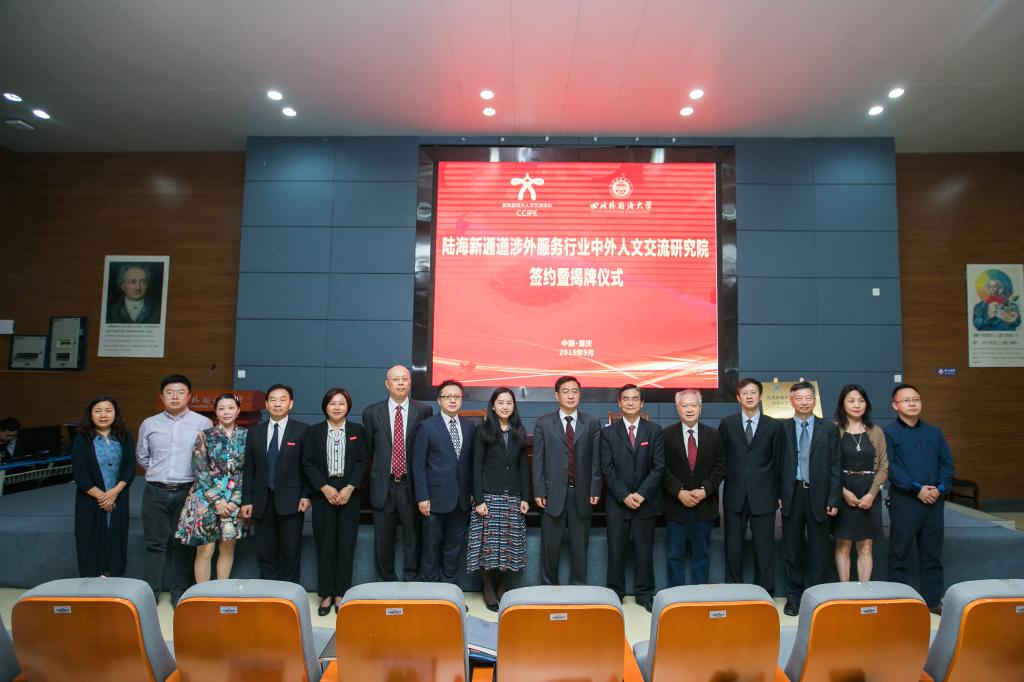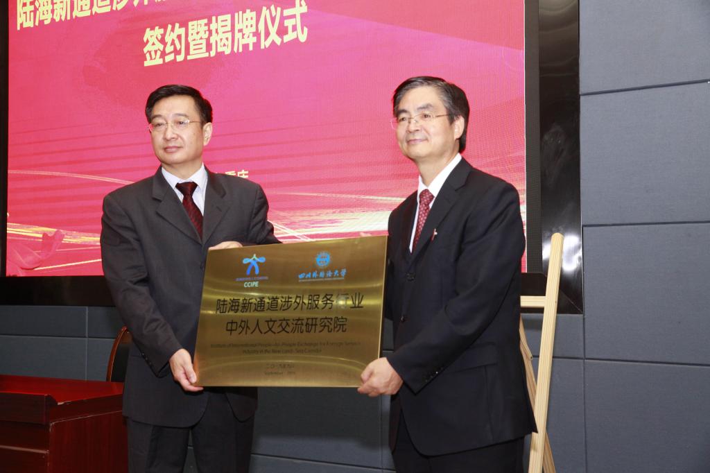 9月18日,陆海新通道涉外服务行业中外人文交流研究院签约暨揭牌仪式在我校西区教学楼A栋报告厅举行。教育部中外人文交流中心主任杜柯伟与我校校长李克勇分别代表合作双方正式签约,并为“陆海新通道涉外服务行业中外人文交流研究院”揭牌。