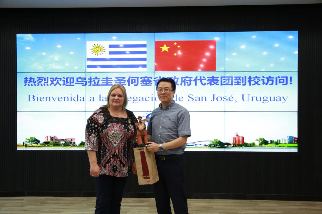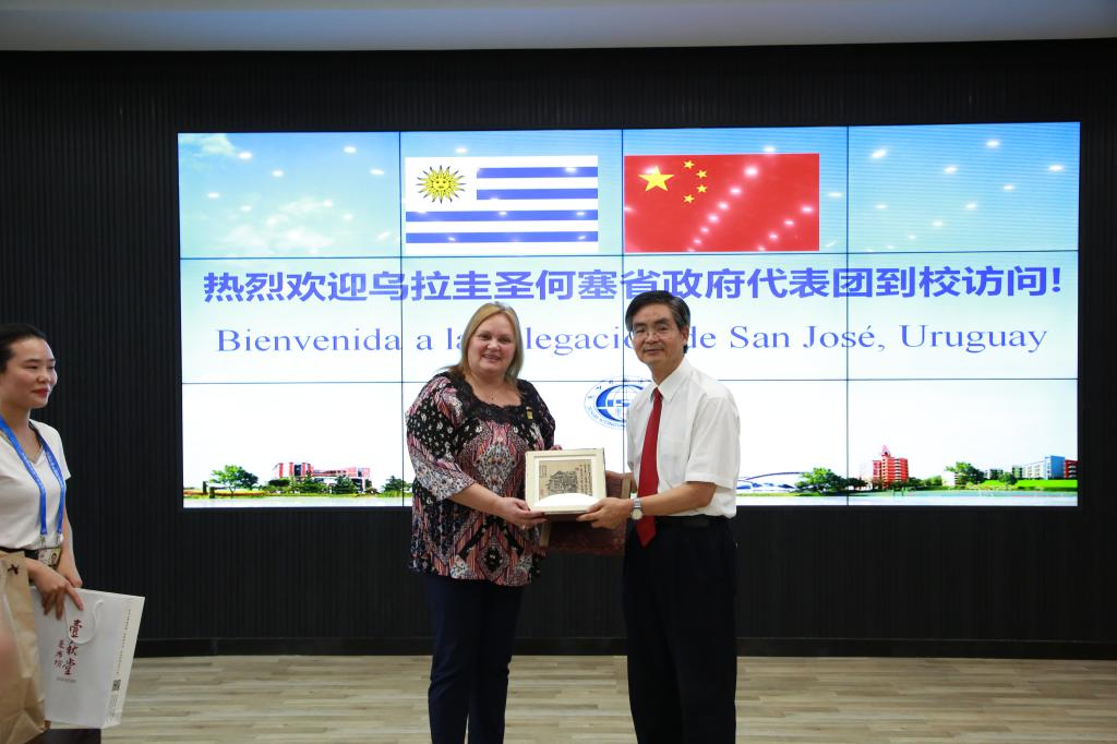 李克勇校长首先代表学校热情致辞,欢迎乌拉圭圣何塞省副省长安娜·本塔贝里一行到校访问,感谢圣何塞省将派教师到川外及川外附中工作,并向来宾介绍我校的基本情况。李克勇向安娜·本塔贝里副省长一行重点介绍了学校的发展历史、办学特色优势、人才培养目标、科学研究成果及国际合作与交流等方面的情况。同时,李克勇根据来访客人此行目的择要介绍了我校西葡语系的办学规模、师资力量、就业方向、专业建设、教学成果和对外交流等基本情况;要求学校国际处、后勤管理处和西葡语系等相关部门要加强分工合作,做好末来到校工作的乌拉圭教师的工作和生活保障服务;希望川外及川外附中以此次安娜·本塔贝里副省长一行访问为契机,与乌拉圭高校,特别是圣何塞省的高校和中学建立起实质性的合作交流关系,为中乌两国在教育国际合作与交流方面的深入发展做出积极贡献。