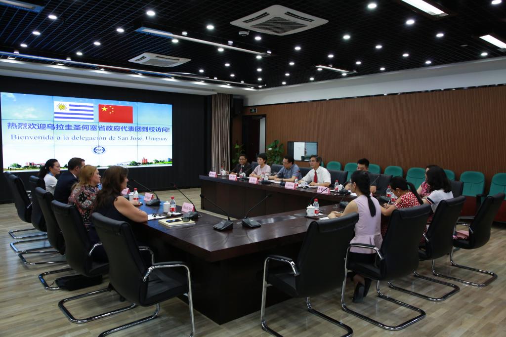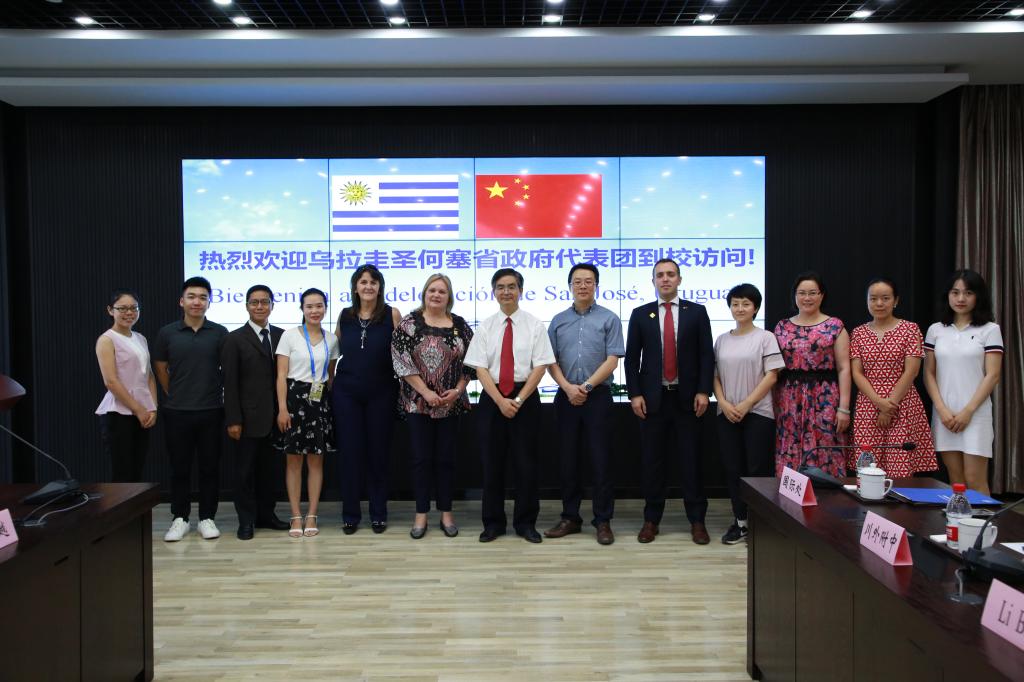 8月24日下午,乌拉圭圣何塞省政府代表团在重庆市政府外侨办工作人员陪同下到访我校。李克勇校长代表学校在学校行政楼C117会见来宾并与客人友好会谈。重庆市教委国际处副处长李斌、川外附中副校长孔静、国际合作与交流处副处长马驭骅以及后勤管理处、西葡语系等相关部门和院系代表参加会谈。