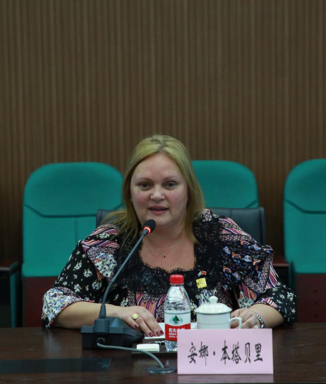 随后,圣何塞省副省长安娜·本塔贝里对李克勇的欢迎和致辞表示感谢并介绍了圣何塞省和省教育部的基本情况。她表示,圣何塞省在去年九月份与重庆市缔结为友好城市,她很庆幸能在这样好的历史机遇下,通过重庆市政府的精心安排和市教委的大力推荐,来到美丽的川外校园与川外校长和师生代表讨论国际合作与交流。她还特别强调,通过此行访问,一名来自圣何塞省的优秀西班牙语教师明年3月将被派到川外西葡语系任教,一名高水平的乌拉圭足球教练也将被选派到川外附中任教。她希望并相信,师资交流只是双方合作的良好开始,更多的合作交流项目将进一步推动并加深双方的友好关系。