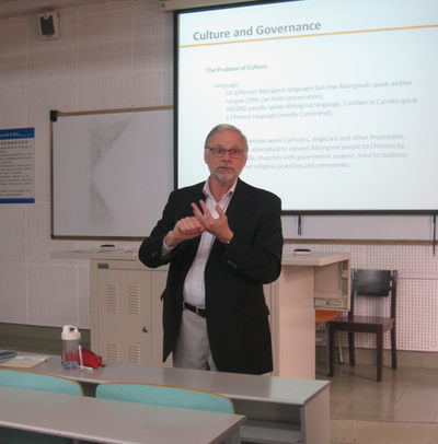 Paul Maxim教授首先在宏文楼一楼阶梯教室为我校研究生做了题为“Indigenous Culture and Public Governance in Canada”的讲座。Paul教授的讲座风趣幽默,博得了在座同学的热烈回应。在提问环节,同学们纷纷踊跃就讲座内容向Paul Maxim教授提问,Paul Maxim教授则针对同学们提出的问题一一进行详细解答。
