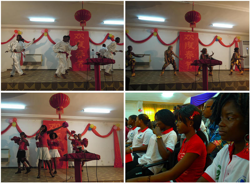 联欢活动在洛美大学学生艺术团精彩的舞步中拉开序幕。他们表演的极富节奏感的传统击鼓和精彩的地方特色舞蹈活跃了现场气氛。接下来孔院学生表演的歌伴舞《欢乐中国年》,更是把春节红红火火,欢欢喜喜的情景带进了现场。功夫表演《男儿当自强》,将现场的气氛推向了高潮。朗诵和演唱《水调歌头——明月几时有》、《朋友》《送别》等节目,让来宾和师生掌声不断;现代舞《不怕不怕》,把学生的热情洋溢表现的淋漓尽致;相声《汉语比赛》引来了现场的笑声阵阵;流传千年的爱情故事《新白娘子传奇》,被孔院学生精彩演绎。大合唱《明天会更好》,让大家把对龙年的不舍和眷恋放下,来迎接蛇年的憧憬和期待。联欢活动在孔院师生集体上台表演多哥的传统舞蹈中落下帷幕。