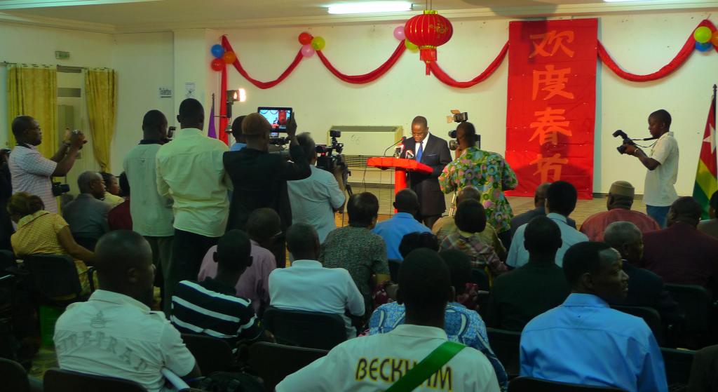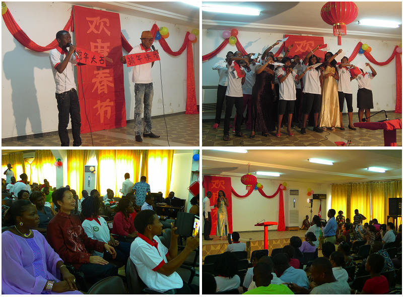 金蛇狂舞气象新,孔院师生喜迎春。2013年2月8日,与我校共建的多哥太阳集团tyc122cc在南校区礼堂举行了蛇年新春联欢会。中国驻多哥使馆王作峰大使、洛美大学校长诺努(NONOU)、经商处胡平参赞、多位前政府部长、部分华人代表、洛美大学有关院系领导和部门负责人等200多人出席此次春节联欢活动。