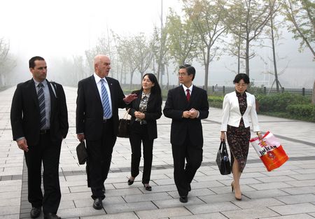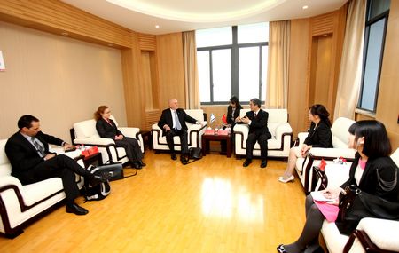 10月24日上午,以色列驻华大使马腾(Matan Vilnai)一行来访我校。我校校长李克勇、国际关系学院院长肖肃等领导以及重庆市外侨办的官员在西区行政楼A-401会议室与其进行了亲切会晤。与马腾大使一道前来的有以色列驻华大使馆文化学术及省际事务主任柯智凯(Zvika Ziv)、中以学术交流促进协会(SIGNAL)主席魏凯丽(Carice Witte)等以色列大使馆代表和中以学术交流促进协会(简称“SIGNAL”)代表团成员。