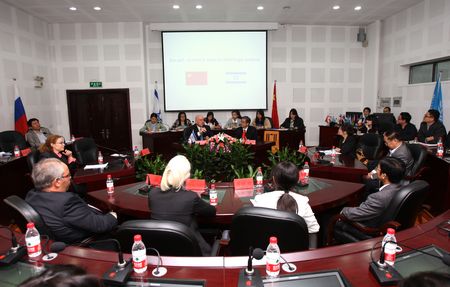 随后,马腾大使讲话。他先是从历史、民族、疆土等多方面比较了以色列和中国的相似点,指出中国和以色列一样都是一个为本民族骄傲的国家,双方合作必将愉快而顺利。大使还以幻灯片的形式向大家介绍了以色列的人文、科技、医学、农业等方面的成就,尤其是在技术和发明创造方面的贡献。对于国际关系学院学生们随后提出的问题,马腾大使都一一给予解答。