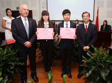 会谈结束后,大使和校领导一行人转至教学楼A2-1会议室出席了第三届“SJI”杯犹太/以色列研究论文大赛闭幕式。