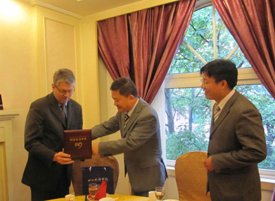 2011 年12月1日 ,美国顶尖文理学院明尼苏达州穆尔赫德康科迪亚大学奥弗梯商学院(Offutt School of Business , Concordia College)院长Doctor Greg Cant访问川外,与四川外语学院副校长王鲁男和川外商学院院长杨柏进行了会晤,深入交流了两校的合作事宜。