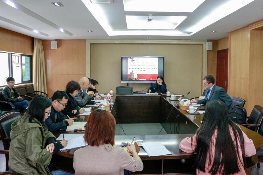 3月26日,新西兰奥塔哥大学国际市场(东亚区)经理Dan Prain先生来访我校。副校长李小川热情接待了来宾。国际合作与交流处处长张幼斌、研究生院副院长赵永峰以及商务英语学院、国际商学院、研究生院、英语学院、教育学院等相关老师共同参与项目洽谈。