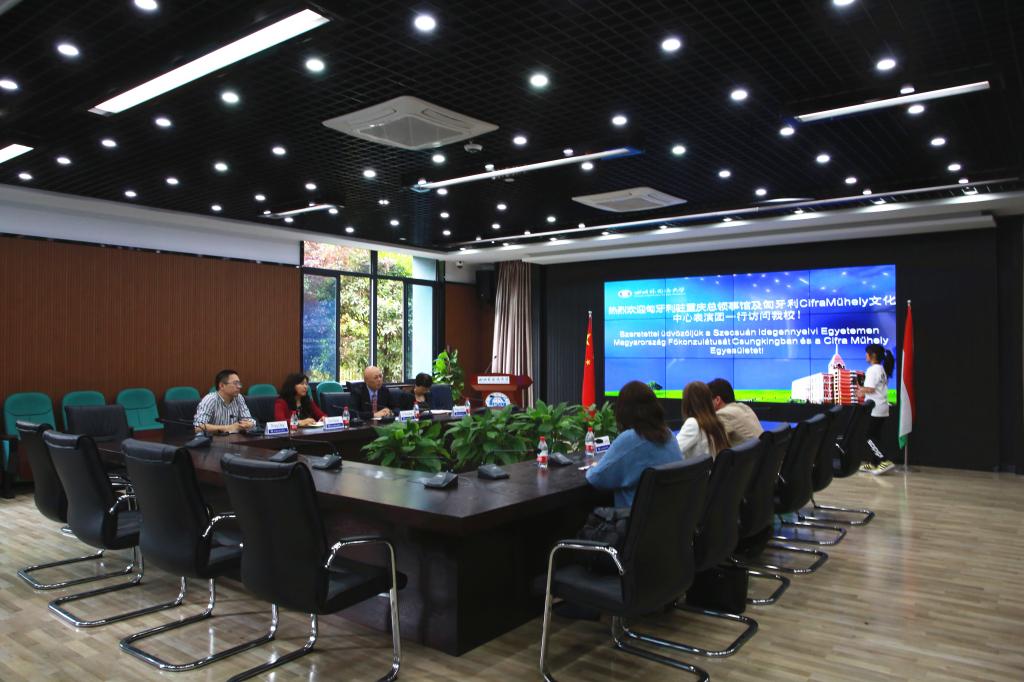 2018年5月23日下午4点半,匈牙利驻重庆总领事馆副总领事霍华儒先生,秘书处主任丹琳,政府关系专员王丽娟,文化教育专员李静一行携匈牙利CifraMűhely文化中心表演团访问我校,李小川副校长在C栋行政楼C117会议室会见了霍华儒一行。国际合作与交流处处长张幼斌,国际关系学院院长刘玉梅,院长助理张庆也参加了此次会议。