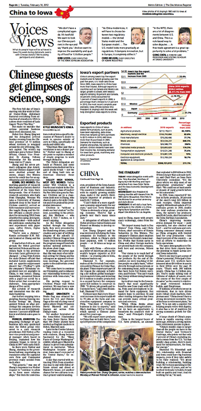 4.陈功副教授接受爱荷华州首席报纸Des Moines Register专访,并登载于该报2月14日主要版面第4A页(Voices & Views)。