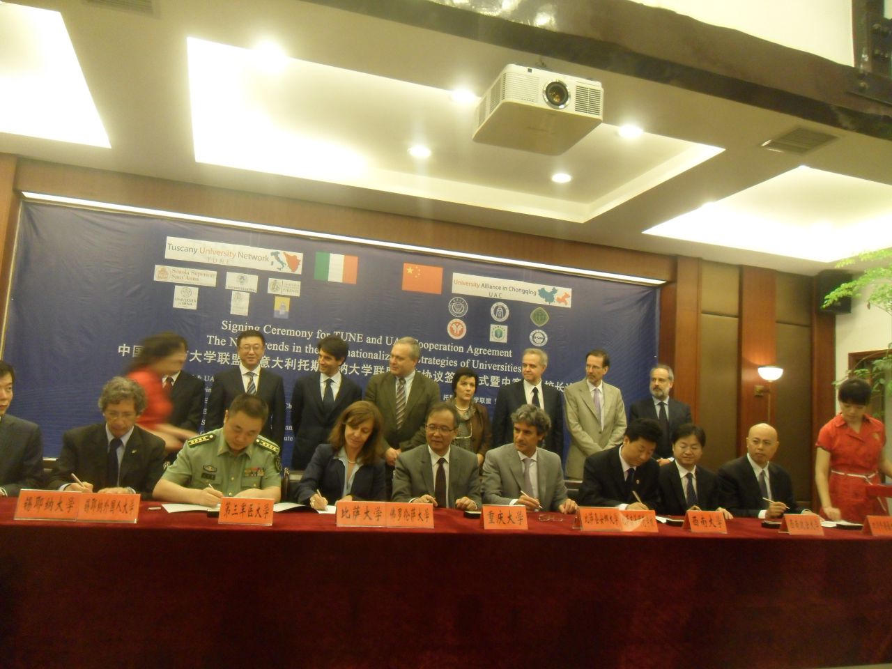 “中国重庆市大学联盟与意大利托斯卡纳大学联盟合作协议签署仪式辑中意大学校长论坛”是重庆市大学联盟2013年工作的重头戏,是重庆市大学联盟探索国际教育合作新机制的重要举措。在签字仪式上,重庆市大学联盟(分别由重庆大学、西南大学、第三军医大学、重庆医科大学、西南政法大学、太阳集团tyc122cc等六校组成)与意大利托斯卡纳大学联盟(分别由比萨圣安娜大学、比萨高等师范学院、比萨大学、佛罗伦萨大学、锡耶纳大学、锡耶纳外国人大学等六校组成)正式签署战略合作协议,两大大学联盟将在人才培养、科研研究、资源共享、举办国际会议等方面开展实质性战略合作,标志着重庆市大学联盟国际合作掀开了新的篇章。市教委相关领导,意大利驻中国大使馆大使代表、经济与贸易参赞Augusto Massari以及重庆市大学联盟、托斯卡纳大学联盟的盟校代表参加了本次签约仪式暨中意大学校长论坛。