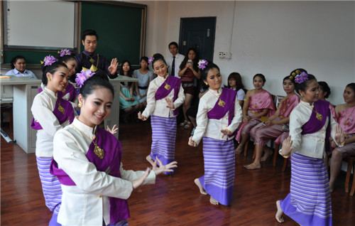 我校和泰国清迈皇家大学于2013年4月在教育合作交流、文化研修、学分互认等方面达成多项共识,签署了交流与合作协议,正式建立了友好关系,开启了两校友好往来的新篇章。根据两校协议, 2014年3月,清迈皇家大学派遣第一批21名交换生来我校学习汉语。今年9月,清迈皇家大学将继续派遣10名学生来我校攻读硕士学位。