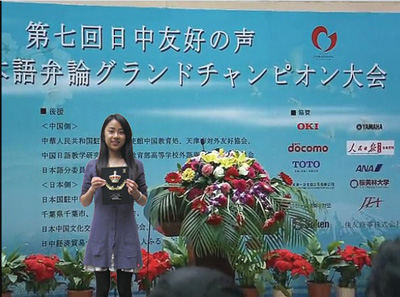 2012年 4月8日,第七届中日友好之声日语演讲全国冠军总决赛在天津外国语大学举行。我校东方语学院日语系大三学生时雨在比赛中获得二等奖。