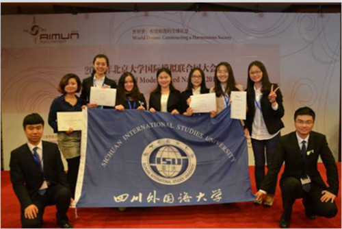 2014年3月20日至23日,由北京大学主办的2014亚洲国际模拟联合国大会在北京文津国际酒店召开,我校学子在国内外精英中表现卓越,获得三项大奖。我校代表团荣获“杰出代表团奖”,国际关系学院2011级王思懿同学荣获“最佳代表奖”,新闻传播学院2011级应侃同学荣获“杰出代表奖”。