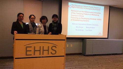 我校四位教师自2013年7月抵达该校以来,依托该校与我校已经建立的良好合作平台,以上述该课题已在国内持续开展的研究成果为基础,利用该校在《市场营销学》教学、创业研究及实践等方面的丰富教学资源和研究成果,进一步深化了在国际化背景下市场营销学课程的教学改革研究。通过随堂听课、资料收集、学术探讨以及参与教学活动等方式,研究我国高校与美国高校在培养学生创新创业能力和课程设置、教学模式等方面异同,探寻适合我国实际的、适应国际化需求的创新创业人才培养模式。此次讲座是我校教师在访学期间的一次学习和研究的阶段性成果汇报,促进了我校与国外高校同行交流学习与合作。