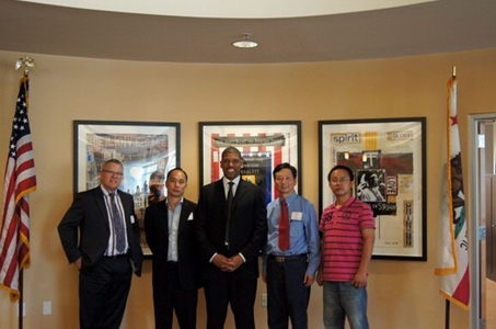 代表团与Fred 副校长合影 访问期间,代表团还受到了加州首府萨克门托市市长凯文·约翰逊(Kevin Johnson)先生的亲切接见。