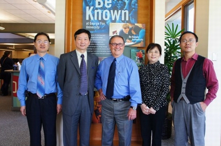 乐勇副院长与加州大学萨克门托分校领导合影 乔治福克斯大学和爱达荷大学特别看好国际通识课程,两所大学已经与我们签署了友好合作协议。值得一提的是,乔治福克斯大学是美国前总统胡佛的母校,该校负责教务的副校长Patrick Allen博士、负责国际合作的副校长Fred Gregory先生、负责招生的副校长Dale Seipp Jr.先生,特别调整休假安排,分别在三个不同的时间段,隆重接待我校代表团,充分表现出对我校的重视和对国际关系学院国际通识课程的认可。