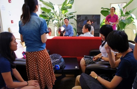 乐勇副院长询问同学们的学习和生活情况 乐勇了解到我校学生由于英语语言能力好,都进入了最高等级的班级学习,很是欣慰。他叮嘱同学们要珍惜留学机会,努力学习,为学校争取更大的荣誉。同学们也纷纷发言,感谢学校为他们提供的国际化学习平台,表示一定珍惜在加州大学学习的机会,争取更加优异的成绩为川外争光。